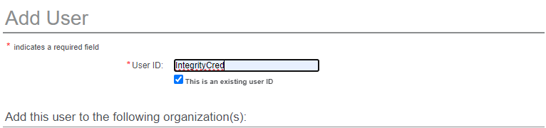 If the user has an account, enter their user name and select "this is an existing user ID". See below for reference.
